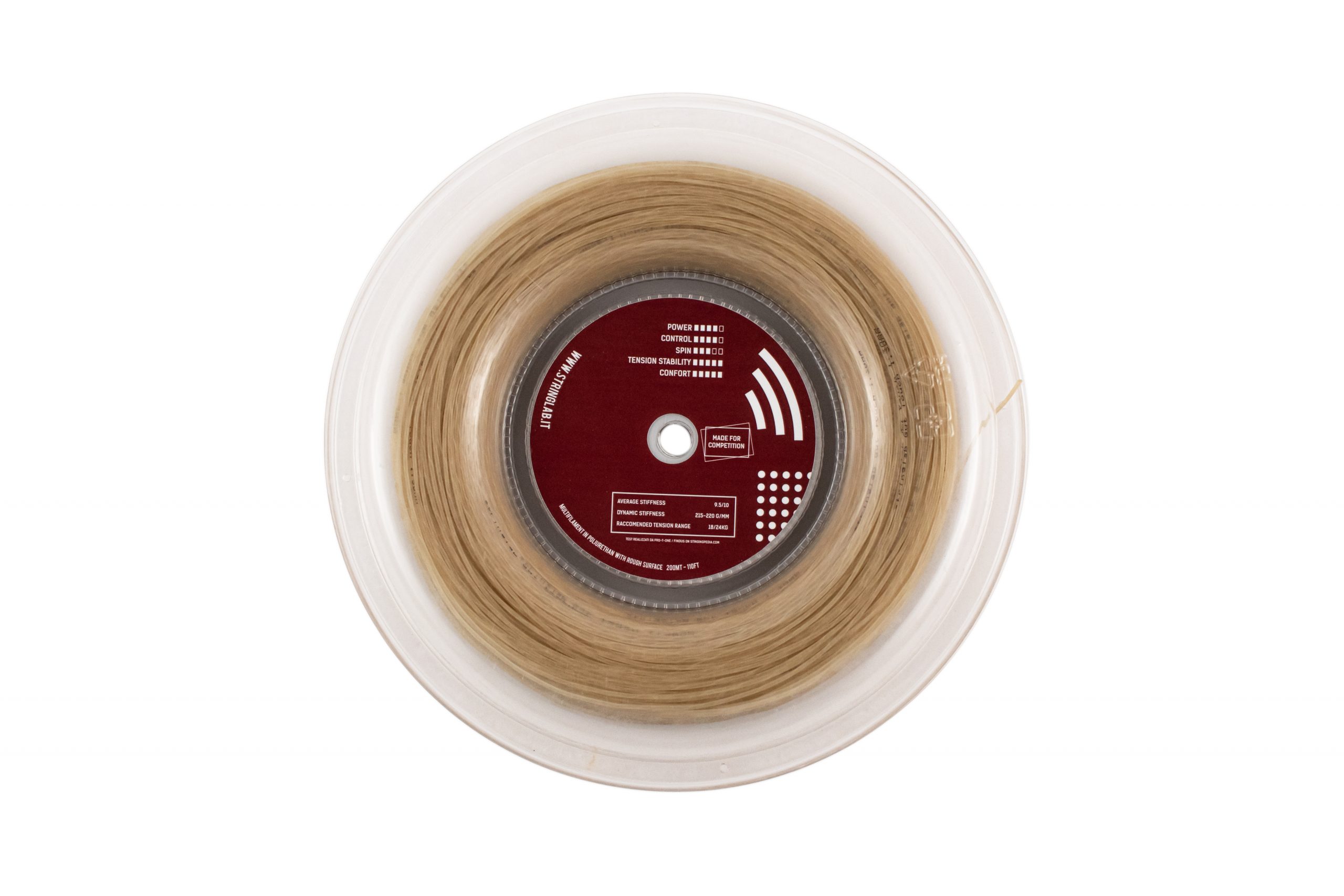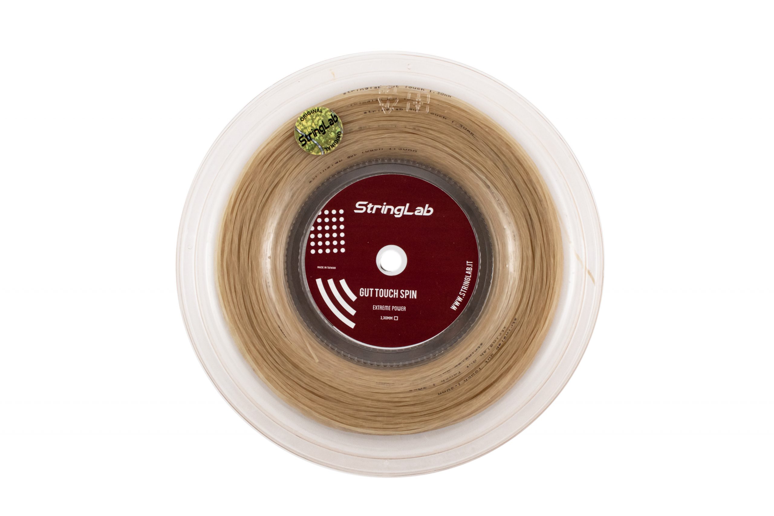 The Stringlab string, Gut Touch Spin, color Amber, produced in the 1,30mm gauge, has been specifically designed to provide, in addition to comfort and playability, as close as possible to that of natural gut , also a discreet spin thanks to the thermally fused polybutylene spiral, which “embraces” each of the approximately 1650 microfibres worked with a thermoelastic polyurethane, which creates a raised backbone that bites the ball.