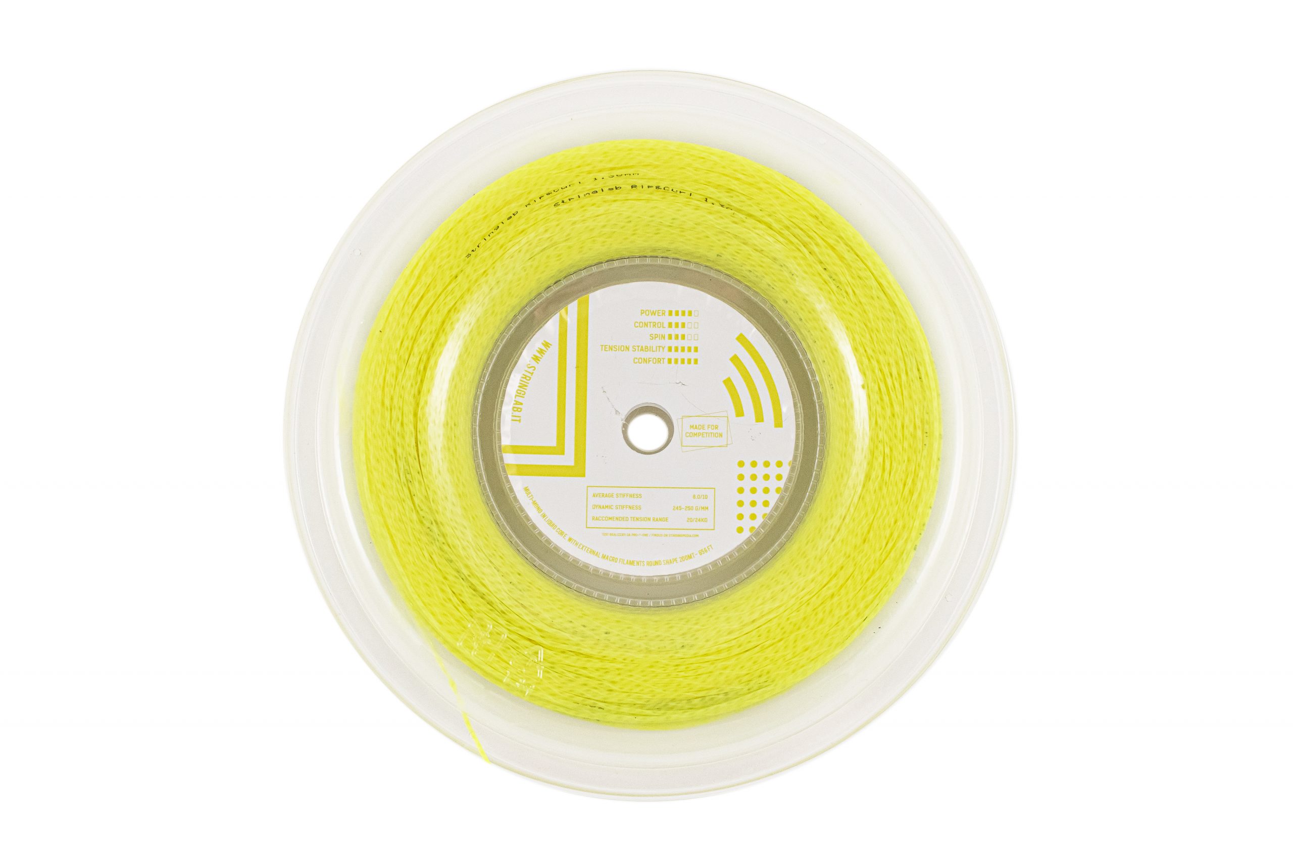 Stringlab rip & amp; curl, is the first multimone launched on the market by Stringlab. n nA versatile and complete product, which manages to combine the various needs of customers from the arm and palate FINE! n nExcellent ball output, as well as control with negligible loss of tension and truly amazing spin. n nThe PU core gives the rigging that delicacy to the impact typical of multi-noble, without excessive shock even for the most delicate joints and the external winding, with gradual processing heat treatment, gives the solidity of the response and a satisfactory rotation grip. n nColor, fluo Yellow!