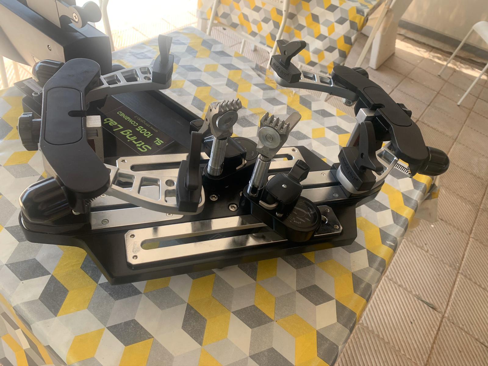 Assembled stringing machine, transformed from manual to electronic by installing a WISE motor. The machine is new, bought online, we have only installed a precise and efficient motor in our laboratory. WISE. The machine has pliers with diamond cast in the teeth of the pliers, and gravity lift bases. Solid and well-made turntable. WISE motor needs no introduction, the most popular motor for stringing machines. Solid and indestructible. Guaranteed for 2 years. Motor equipped with independent calibration control and adjustment system. & nbsp; more