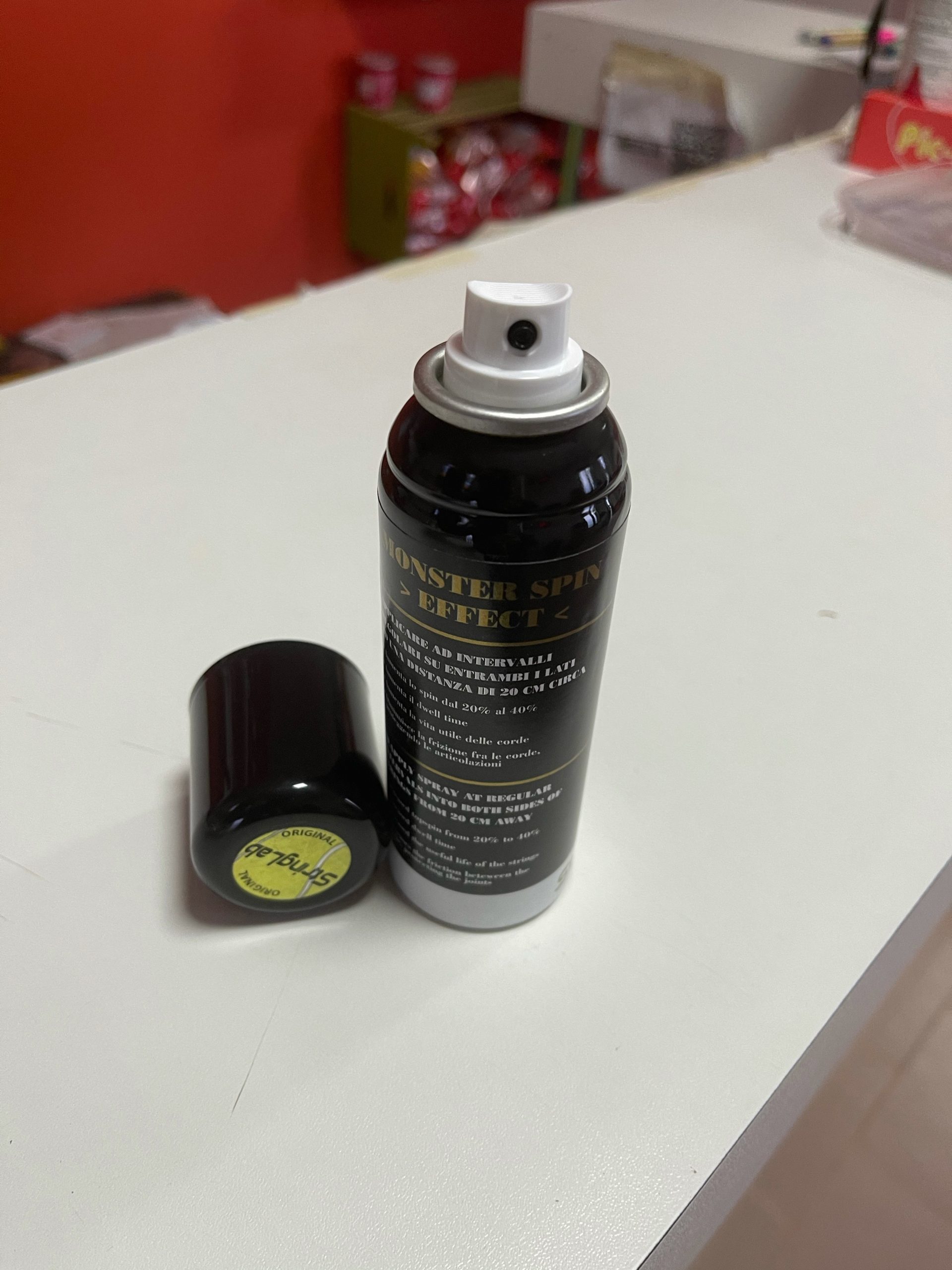 Monster Spin Effect! Spray with silicone, Teflon and wax microspheres, which amplifies the spin from 20 to 40% without damaging the tinkering. The spray, very easy application, it should be sprayed at regular intervals, on both faces of the racquets at a distance of 20 cm. It also increases the dwell time, and the useful life of the strings, decreasing the friction between the strings while protecting the joints. & nbsp; 100ml for over 50 applications.